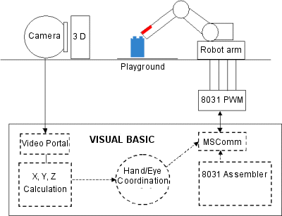 the arm and sends the data via a serial port to the servos. An 8031 Microcontroller