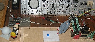 hooked together computers, TV cameras, and robotic actuators to build towers from